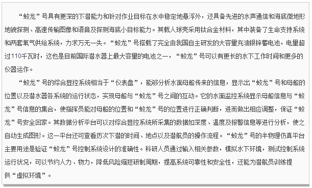 “蛟龍”號深潛器結構示意圖