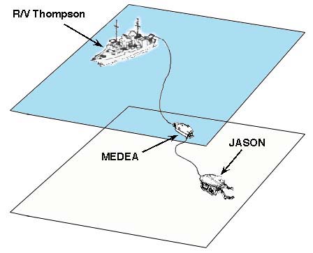 3 ROV Jason & Medea和母船Thompson海上作業模式圖