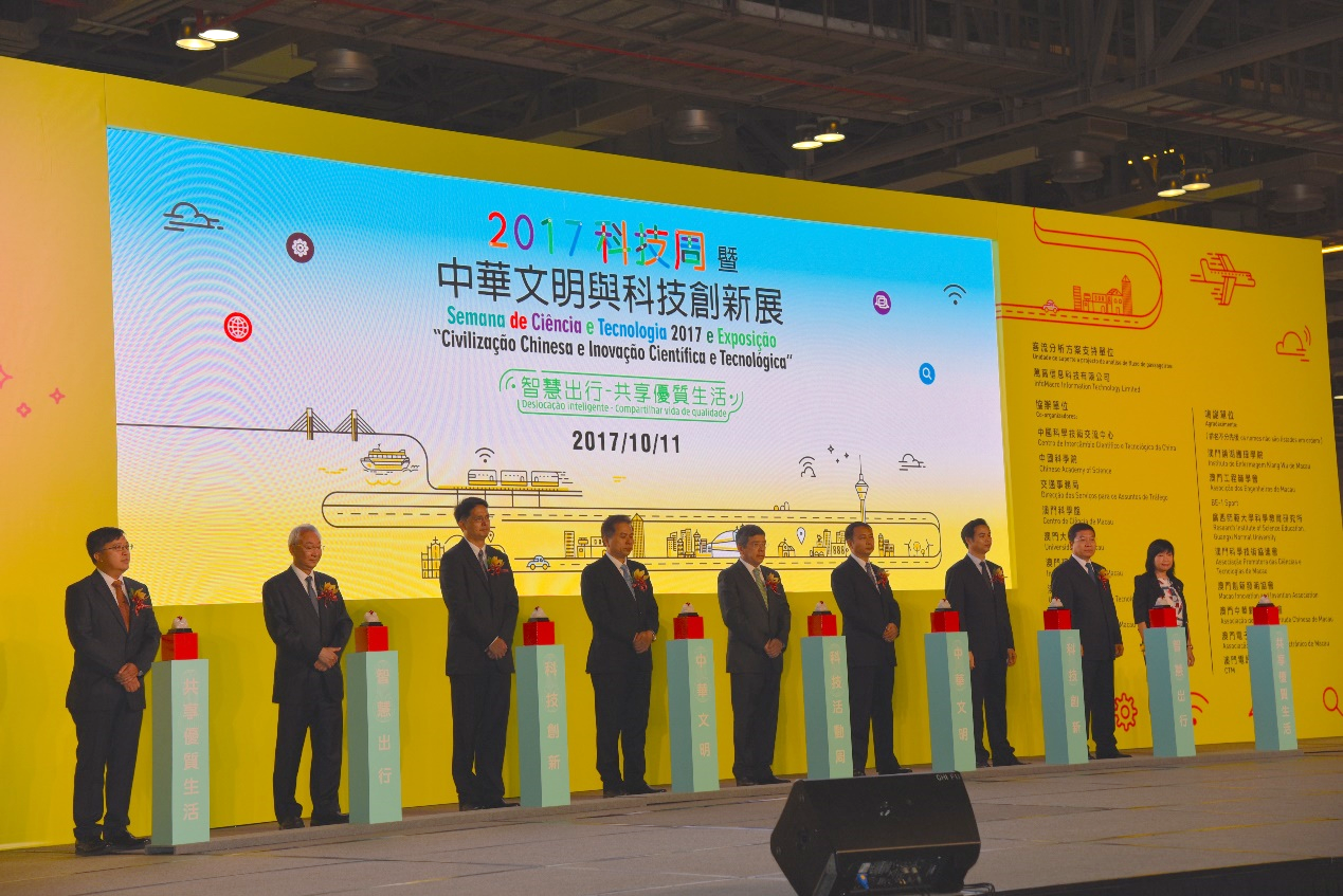 10月11日上午,在國家科學技術部支持下,由澳門科技委員會主辦、科學技術發展基金承辦的“2017科技周暨中華文明科技創新展”在澳門金光會展隆重開幕。澳門特別行政區政府運輸工務司司長羅立文、中央人民政府駐澳門特別行政區聯絡辦公室黃華蓋副秘書長、科學技術部苗少波副秘書長等出席開幕式。