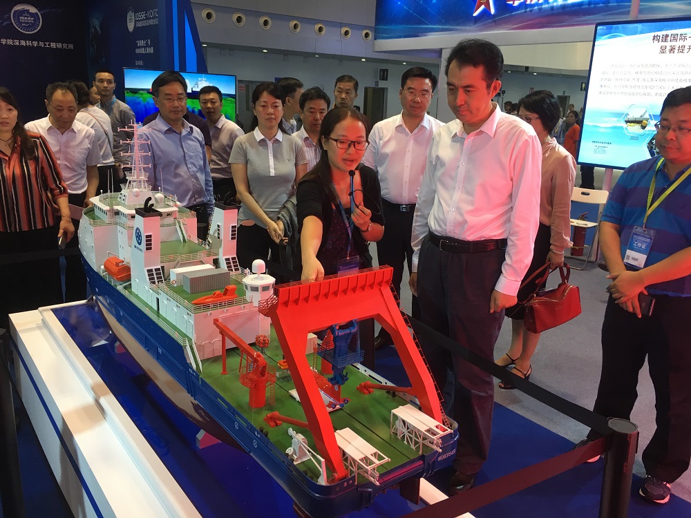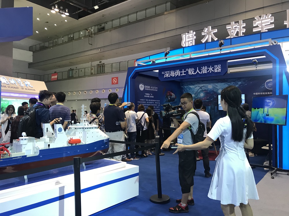 為深入貫徹軍民融合發(fā)展戰(zhàn)略,促進(jìn)軍民融合產(chǎn)業(yè)創(chuàng)新發(fā)展,中國科學(xué)院深??茖W(xué)與工程研究所應(yīng)科學(xué)技術(shù)部的邀請,參加此次展會(huì)。深海所展出了“探索一號”科考船及其搭載的深海儀器設(shè)備模型,以視頻形式向大眾展示了中科院深淵科考隊(duì)“探索一號”到馬里亞納海溝挑戰(zhàn)者深淵開展深淵科考的情況。并利用虛擬現(xiàn)實(shí)技術(shù)(VR)多維解析了我國擁有自主知識產(chǎn)權(quán)的載人潛水器“深海勇士”號的結(jié)構(gòu)原理,通過VR場景模擬讓觀眾親身體驗(yàn)乘坐“深海勇士”號潛入深海進(jìn)行科考作業(yè)的場景。