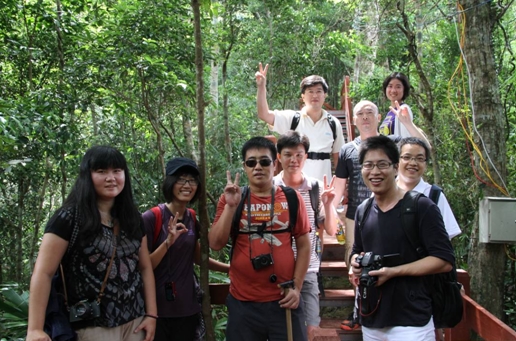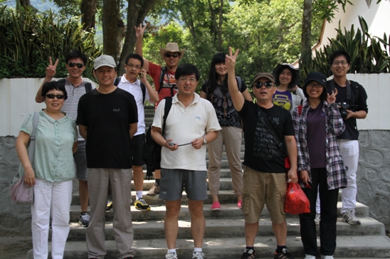 5月11日上午8時許出發(fā),經(jīng)過兩小時二十分的車程,登山隊伍順利抵達了五指山下。在真正看到素有海南島象征的五指山后,大家都被眼前的美景所陶醉,放眼望去,群山環(huán)繞,云海茫茫。在觀山臺正面眺望五指山,五峰并列如擎天五指,在云海中時隱時現(xiàn),盡收眼底。隨著一聲令下,大家迅速收拾起陶醉的心情,開始向頂峰攀登。景區(qū)內(nèi)古樹參天,巨石嵯峨,藤蘿密布,奇花異草隨處可見,大家一邊登山,一邊欣賞著美景,心情格外的舒暢歡愉。途中歡聲笑語不時響起,團隊氣氛輕松融洽,在一些陡峭難行的路段,大家相互幫助,你托我扶,處處體現(xiàn)著同事間的關(guān)愛和團隊協(xié)作精神。隨著時間的推移,腳力好的隊員沖鋒在前,已尋不到蹤影。午后一點,天空逐漸陰了下來,不時有點點雨星落下,看著遠遠的山峰,腳下盤根錯節(jié),蜿蜒陡峭的山路,為了安全起見,大家決定簡單休整后下山。當聚在半山腰,圍坐在一起,盡情領(lǐng)略著熱帶原始森林的秀美,享受著精美的午餐時,大家忘卻了登山的勞頓,說說笑笑,儼然成了這美景中的一部分。沖在前面的兩名隊員遲遲未能回歸,經(jīng)過一番聯(lián)系,電話那頭傳來興奮、驚喜地聲音,原來他們已經(jīng)登上了最高峰……下午四時許,12名隊員在回程的路上熱鬧的交流著登山的感受,兩名登到頂峰的隊員,更是激動興奮地給大家講頂峰奇特瑰麗的風景,聽得大家仿佛置身其中一斑。