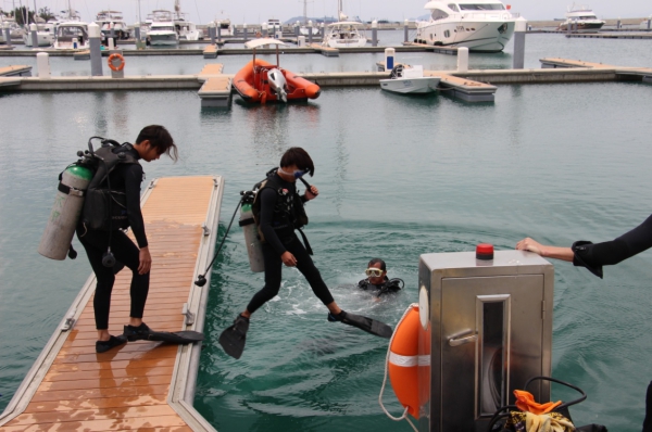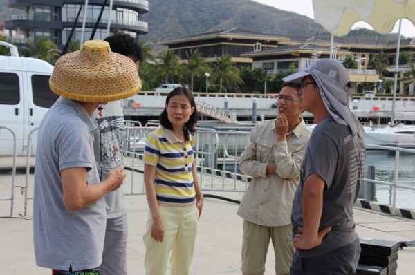 4月9日一大早,我所人員與海南省海洋與漁業廳等的相關人員匯合準備營救海豚。但抵達現場后,海豚已不知所蹤。工作人員隨即派潛水人員下海搜尋,但遺憾的是,經過4個多小時的搜尋,仍無法確定海豚的蹤跡。最終相關人員決定暫時放棄了對于海豚的搜尋,并安排港內工作人員與附近漁船多注意留心,一旦有消息隨時通知有關部門。