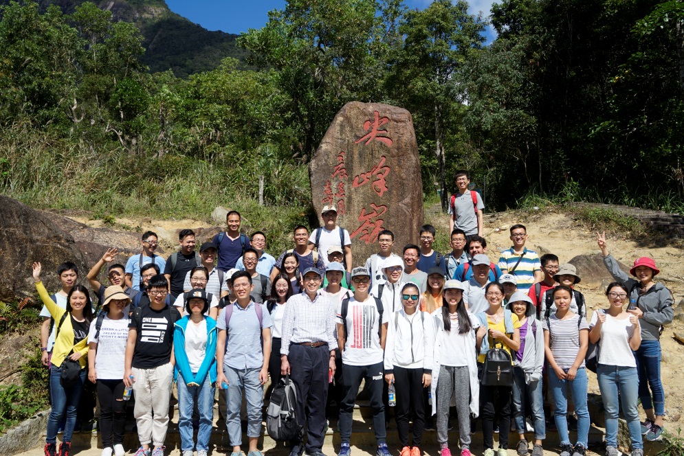 當天上午11點30分,參加活動的成員抵達尖峰嶺國家森林公園,登山活動分成兩個小分隊開展。隨后兩個小分隊分別沿不同的方向爬坡,山路兩邊是茂密的熱帶雨林,隨著海拔高度上升,氣溫不斷下降。約半個小時后,天池小分隊率先到達目的地,熱帶雨林中海拔最高、面積最大的高山湖—天池。這里四周雨林常青,水常藍,碧波蕩漾,一塵不染,燦爛的陽光與水中樹影相映成趣。大家圍著天池邊的棧道游覽,隨后又深入雨林尋找秋意。另一邊,主峰小分隊經過了蜿蜒的盤山公路到達山腳下,大家在有一絲絲涼意的空氣中開始了問鼎主峰之旅。走過了由木棧道、石道、盤根錯節的原始小徑交織的山路,在蜜蜂、蝴蝶、花朵、雨林、陽光、秋風的陪伴中,大家先后登上了海拔1412米的主峰。在主峰上,大家分享著食物,感受著大自然,疲倦也一掃而光。回程路上大家玩著游戲,歡聲笑語灑滿一路。