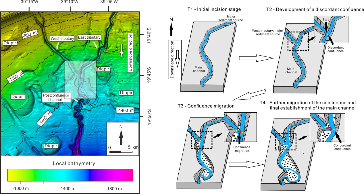 此項研究近期在線發表于國際地質學期刊《Geological Society of America Bulletin》( Y. Qin *, T. Alves, J. Constantine, D. Gamboa, S. Wu, Effect of channel tributaries on the evolution of submarine channel confluences (Espírito Santo Basin, SE Brazil)),由中科院深海所、英國卡迪夫大學,美國威廉姆斯學院和英國地質調查局科研人員共同完成,深海所博士后秦永鵬為本文第一作者。