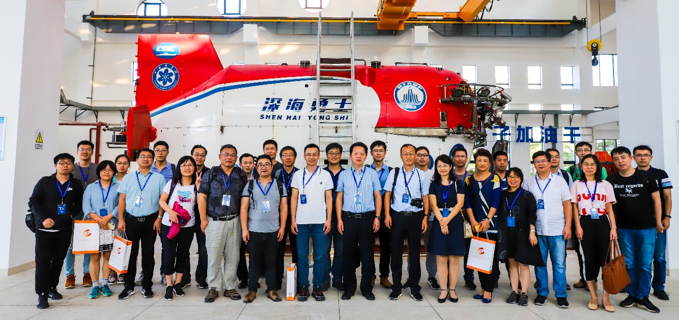參會人員在“深海勇士”號載人潛水器前合影