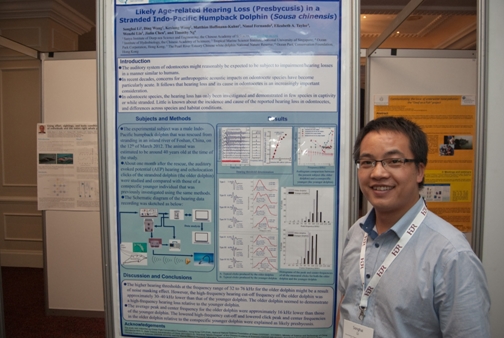 此次會議,李松海與來自世界各地的同行專家分享了其有關中華白海豚聽覺研究的最新研究成果──中華白海豚可能存在老年性耳聾現象。這是繼去年李松海及其同事在世界上首次報道了中華白海豚的聽覺能力及其聽力敏感的聲信號頻率范圍以來的又一次重大發現。這些研究結果填補了世界上有關中華白海豚聽覺研究領域的空白,為制定有效的保護對策以緩解水下噪聲對中華白海豚的影響提供了科學依據。