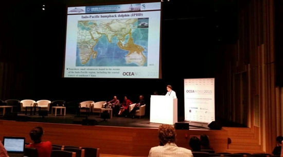 會議期間,李松海作為來自中國大陸地區(qū)的唯一代表,作了題為“小型快艇的中高頻噪聲特征及其對中華白海豚的潛在影響(Mid- and high-frequency noises of small fast-speed boats in shallow water and their potential impacts on the Indo-Pacific humpbacked dolphins (Sousa chinensis)”的會議邀請報告,并同國際上海洋聲學專家就海洋噪聲及其對海洋生物影響等相關(guān)問題進行了學術(shù)交流討論。