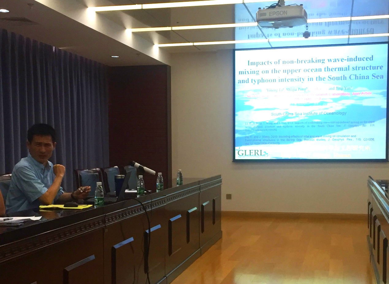 5月5日,應海洋環流觀測與數值模擬研究室謝強研究員和徐洪周研究員的邀請,美國國家海洋和大氣局王佳研究員來我所進行學術交流,并做了題為“Impacts of non-breaking wave-induced mixing on the upper ocean thermal structure and typhoon intensity in South China Sea”的學術報告。