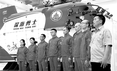 中科院深海所“深海勇士”號(hào)載人潛水器設(shè)計(jì)師胡震和深潛團(tuán)隊(duì)。 李英挺攝