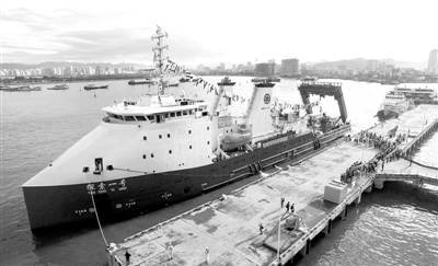 2016812日,“探索一號(hào)”科考船首航太平洋馬里亞納海溝順利歸來,停靠三亞碼頭。(資料圖片)