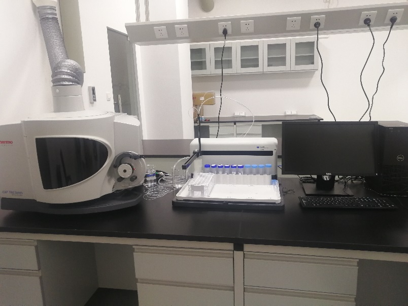 ICP-OES 7400位于綜合樓一樓101實驗室,該儀器配置了標(biāo)準(zhǔn)進樣系統(tǒng)、垂直高鹽進樣系統(tǒng)及垂直耐HF進樣系統(tǒng);具有快速多元素同時分析、靈敏度高、檢出限低、耐基質(zhì)、線性動態(tài)范圍寬等優(yōu)點。可用于生物、地質(zhì)、材料、食品、環(huán)境等各類樣品中大多數(shù)元素的定量分析。