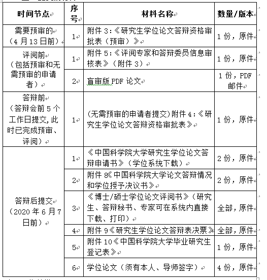評閱完成后,應提前至少五個工作日向人事教育處提交列表中的紙質材料,審核通過后,方可組織公開答辯會(涉密論文除外),否則,視為無效。