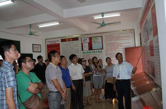 在梅山革命使館,一幅幅梅山革命斗爭中的英雄照片,一件件抗戰(zhàn)時(shí)期的物品呈現(xiàn)在大家的眼前,聽取著現(xiàn)場講解員介紹這些英雄背后的故事,在場的每一個人仿佛都置身在那風(fēng)起云涌、波瀾壯闊的革命斗爭之中,一股股紅色的暖流在心中涌動。走出革命使館,大家又陸續(xù)參觀了廉政展館、珍藏館、紅色詩廊、瓊崖二十三年紅旗不倒選編展館、雙百英雄展廳等。