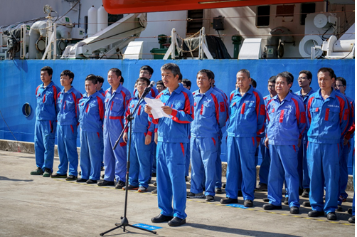 參航人員在碼頭列隊報告順利返航
