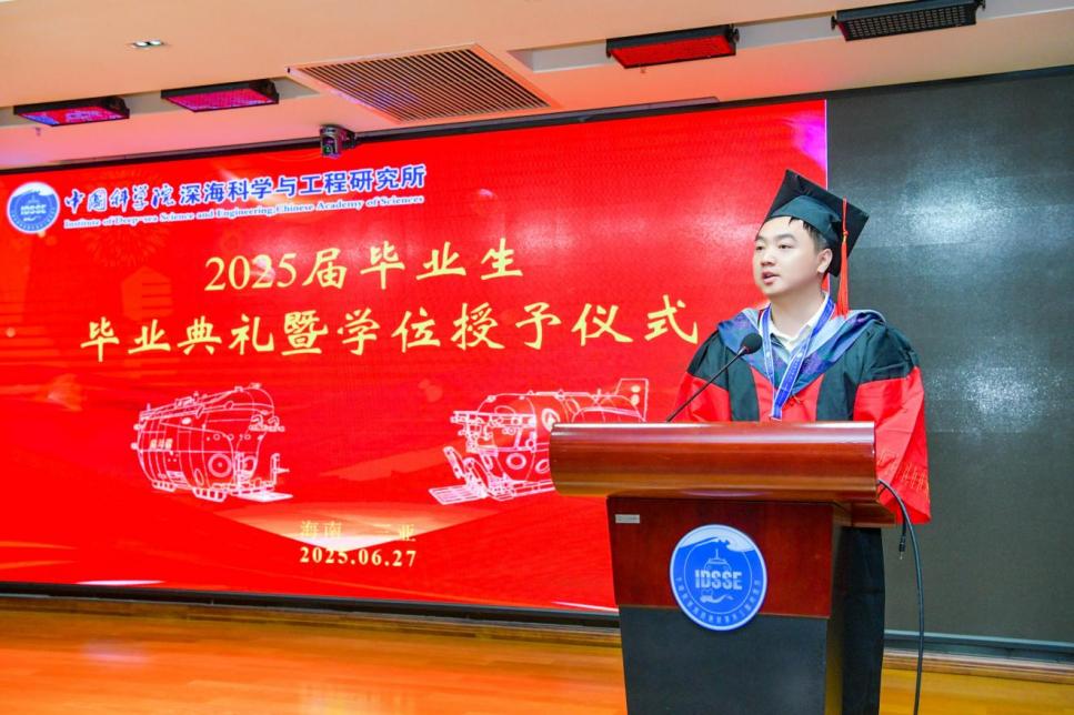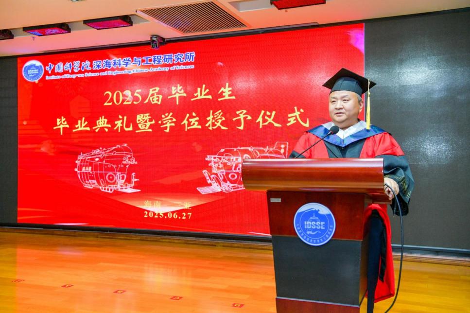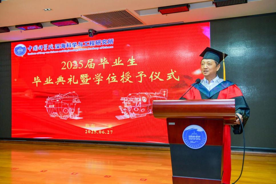 2025627日, 中國(guó)科學(xué)院深海科學(xué)與工程研究所(以下簡(jiǎn)稱“深海所”)2025屆研究生畢業(yè)典禮暨2024-2025學(xué)年優(yōu)秀學(xué)生表彰大會(huì)在1003會(huì)議室順利舉行。所領(lǐng)導(dǎo)、學(xué)位評(píng)定委員會(huì)委員、研究生導(dǎo)師及人事教育處老師齊聚一堂,共同歡送34名畢業(yè)生。會(huì)議由崖州灣園區(qū)管理部主任張忠主持。