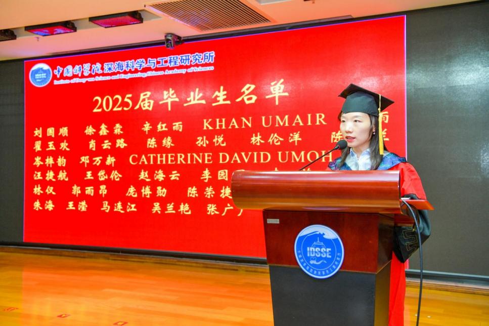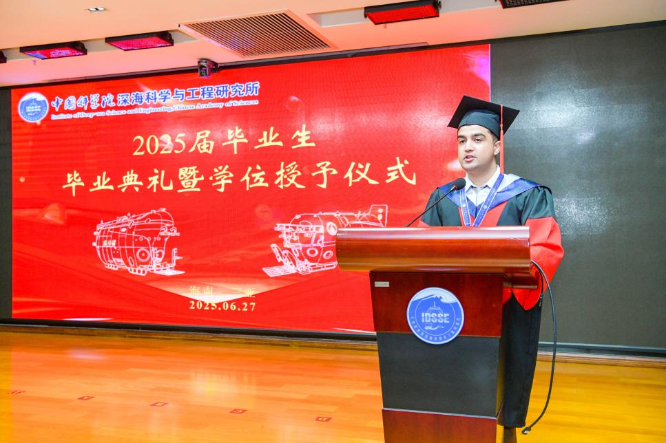 導(dǎo)師代表張海濱的發(fā)言飽含深情與期許。博士畢業(yè)生代表孫悅、UMAIR KHAN和碩士畢業(yè)生代表林僅深情回顧了在深海所的求學(xué)歷程,表達(dá)了對(duì)深海所、導(dǎo)師及同窗的衷心感激,并展望了未來(lái)投身深海事業(yè)的決心。