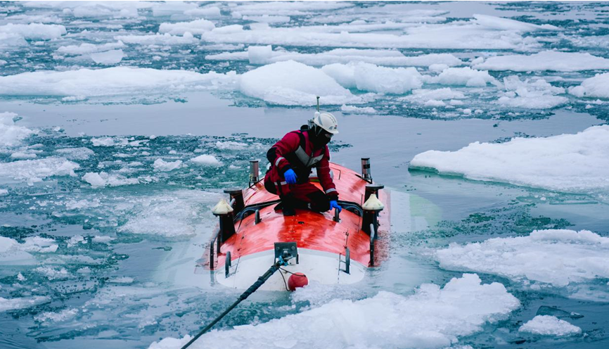 蛙人在北極密集冰區(qū)回收“奮斗者”號(hào)